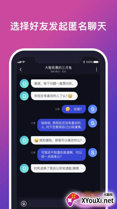 你是否曾想过,与熟悉的朋友,以一种全新的方式交流?Yoolla 让你梦想成真。在这里,你可以卸下伪装,以匿名者的身份,向通讯录里的朋友敞开心扉。对方或许是你朝夕相处的人,却完全无法猜透你的真实身份。这种独特的匿名性,让你能够轻松抛出那些平日里难以启齿的问题,进行一场坦诚而深入的对话。