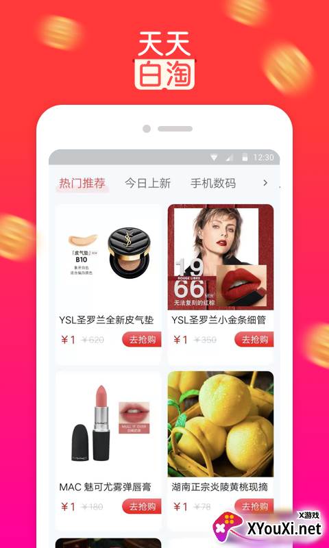 3. **免费抢购,大奖等你:** 天天白淘,汇聚千万好物,更有免费抢购、1元领奖等活动,手机、电脑、家电……大奖就在眼前!