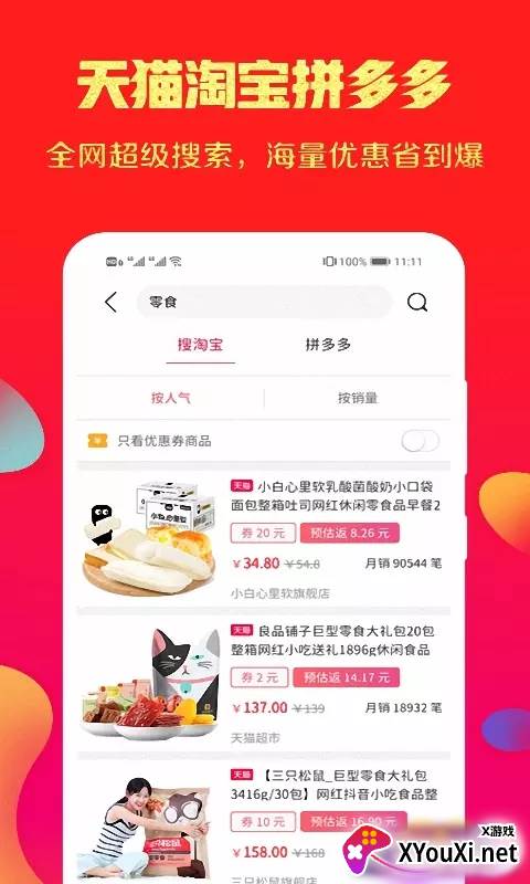 2. 亿万优惠券,折上折购物:平台搜集全网数亿张优惠券,每日精选数万件精品,购买优惠券后,商品价格可低至1-3折,让您以最低价购入心仪好物。
