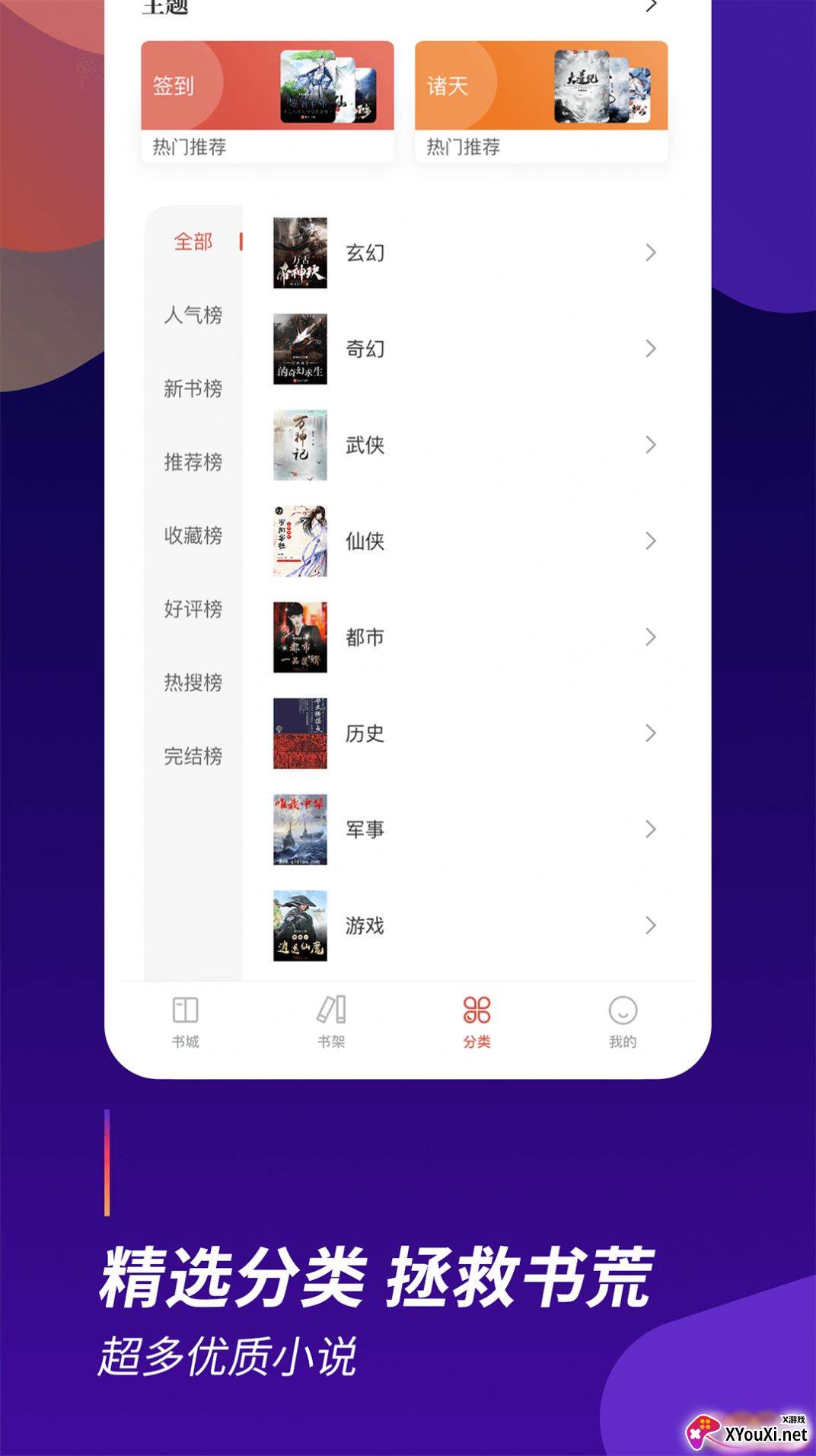 1. 海量书库,种类繁多:各类题材、风格迥异的小说汇聚于此,内容包罗万象,总有一款是你的菜。