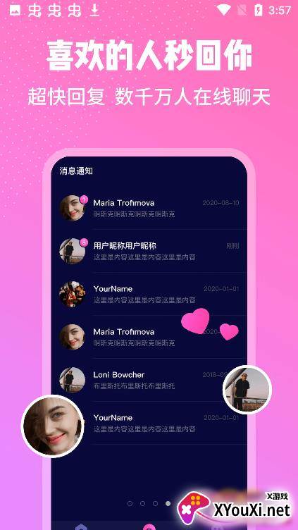 3. **满足需求,分享日常:** 满足单身用户的各种交友需求,随时随地在线聊天,自由分享你的生活点滴。