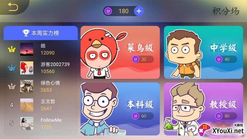 “智力夺金”不仅是一款问答游戏,更是一个集积分与金币于一体的竞技平台,每一局都蕴藏着丰厚的大奖,让你在挑战中满载而归。