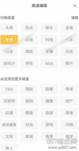2、进入频道编辑界面,用户可以随心所欲地切换不同的新闻频道,更能随需添加更多感兴趣的频道。