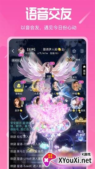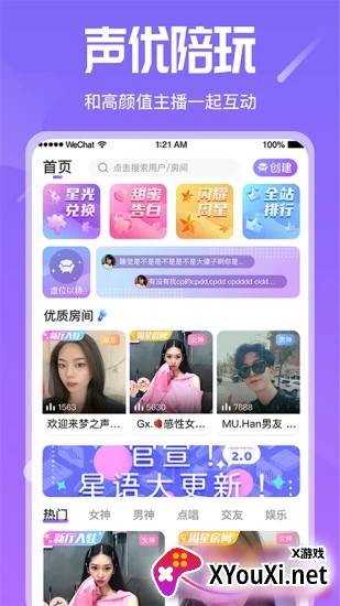 还在为孤单寂寞烦恼?快来试试星语,一款集语音畅聊、趣味互动于一体的靠谱交友平台!这里汇聚了来自五湖四海的俊男靓女,更有丰富多样的聊天游戏等你来玩转,随时随地都能开启一场心动对话。