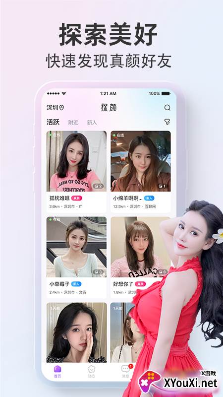 探颜,一个汇聚全国各地俊男靓女的线上社交平台,为你打破地域限制,开启精彩纷呈的聊天交友新体验。在这里,你可以随时随地与心仪的TA进行语音、视频互动,更有丰富多样的聊天游戏等你来战!还在为形单影只而烦恼?探颜海量优质单身资源,让你轻松摆脱孤单,亲密互动,遇见那个特别的TA。立即前往yx007下载,开启你的缘分之旅!
