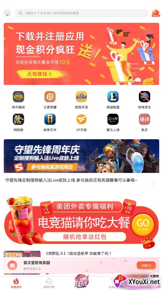 “电竞猫”APP,一款集电竞资讯、攻略分享、大神陪玩于一体的综合性平台,现已推出官网版,为广大电竞爱好者带来前所未有的福利与体验!每日签到即可轻松获取英雄与皮肤,更有机会赢取海量点券,让您的游戏之旅更加精彩!