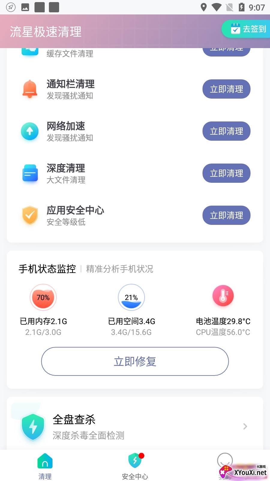 作为一款专业且便捷的手机清理软件,流星极速清理APP致力于为您提供一站式的手机优化体验。它不仅能快速清理手机垃圾,更能一键加速,有效为手机降温,并优化内存空间。它对微信、QQ等社交应用产生的日常垃圾有着独到的清理方案,让您的聊天体验更加畅快。更重要的是,它能切实解决您在使用手机过程中遇到的卡顿、发热、内存不足等棘手问题,让您的手机使用体验,从此告别“不顺畅”!