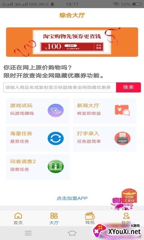 任务库: 抖音、海淘资讯、趣头条、调查问卷、新闻阅读、购物评论、应用下载、微信小程序、公众号关注、淘宝兼职、运动赚钱、挖矿赚钱……你能想到的微任务,这里几乎应有尽有。