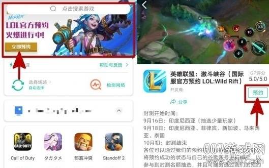 1. 在OurPlay官网或华为荣耀5X的应用市场搜索并下载OurPlay。进入首页,点击Banner图进入详情页,然后点击“预约”。
