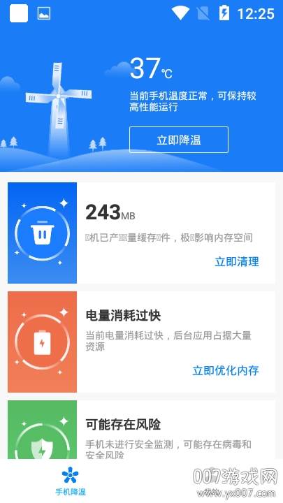 这款名为“即刻降温精灵”的APP,顾名思义,是您手机的得力助手。它集垃圾清理、病毒查杀、内存优化、微信专清、短视频缓存清理等诸多实用功能于一身,旨在全方位提升您的手机使用体验。是否曾因手机卡顿而错失良机?是否因发热而不敢畅玩游戏?现在,有了它,这些烦恼都将烟消云散。