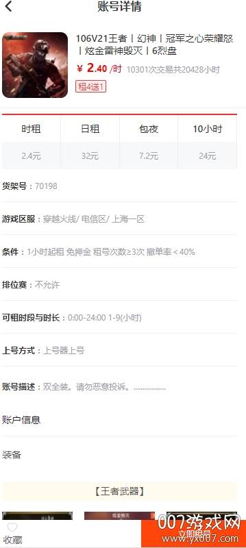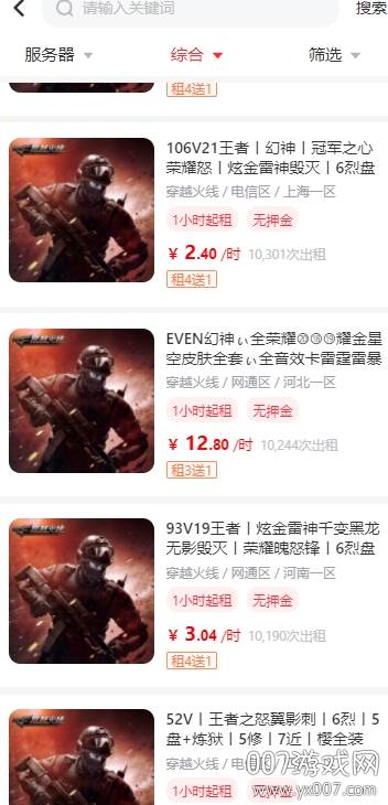 3. 在租号猫的交易中心,浏览并选择您心仪的游戏账号。