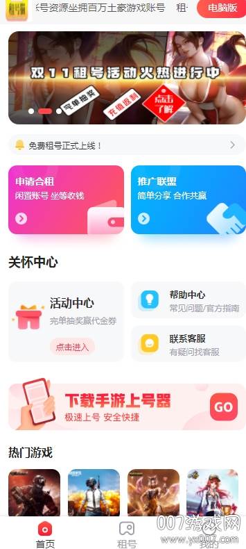 2. 进入应用后,轻点屏幕下方的“租号”选项卡。