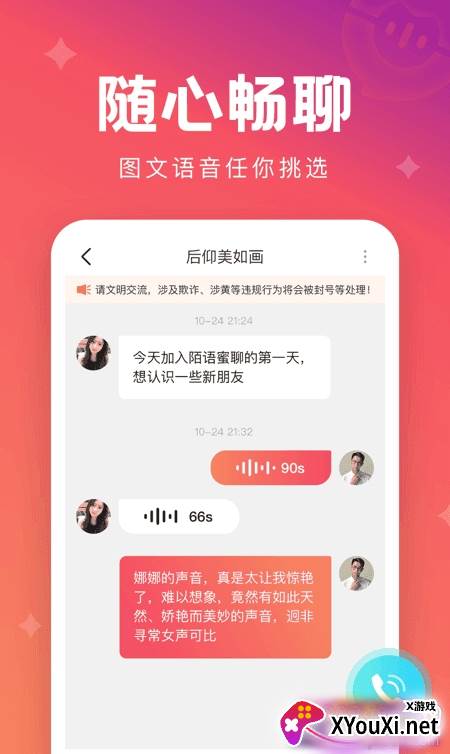 3. 作为新一代的聊天交友软件,我们主打语音、视频聊天,并支持同城约单、组建CP等多种社交玩法。