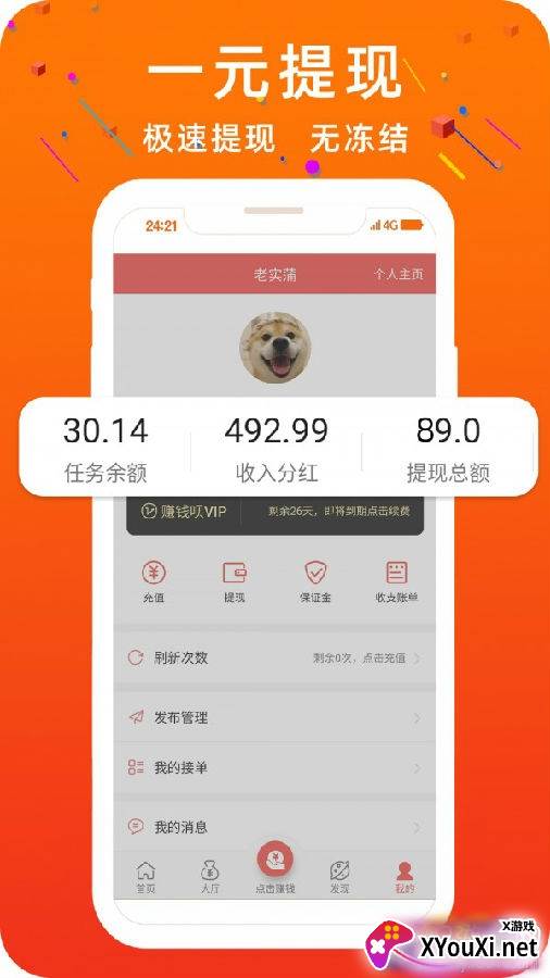 4、秒速到账: 极速提现,让你的辛勤汗水迅速变现,安心有保障。