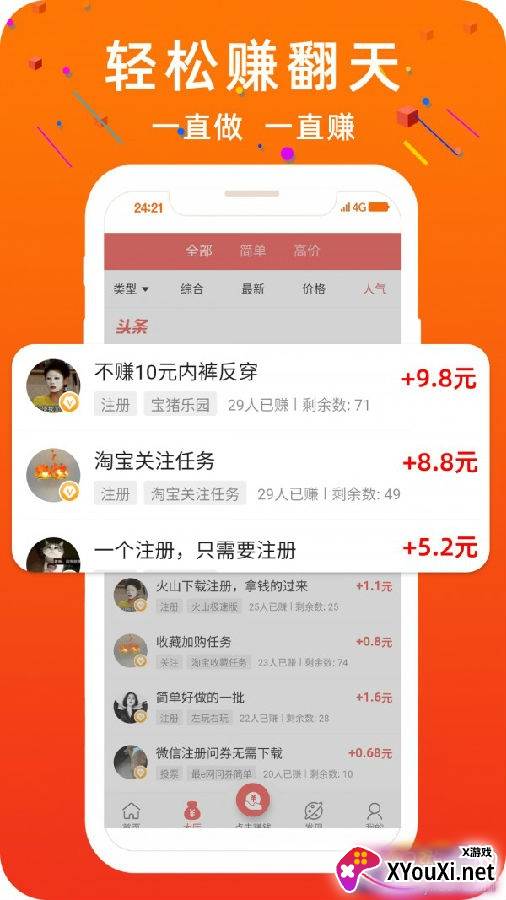 2、任务随心: 趣味多样的任务设计,让你在赚钱的道路上永不枯燥;