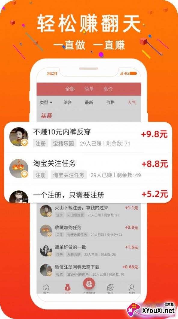 任务多多,乐趣无穷: 趣味任务随心选,动动手指,轻轻松松赚取额外收入,让你的空闲时间也变得有价值。