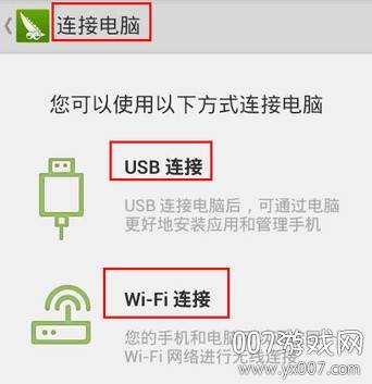 与大多数应用管理软件一样,豌豆荚手机版同样支持手机与电脑的无缝连接。你可以选择USB数据线或WIFI等多种方式进行连接,操作简单快捷。