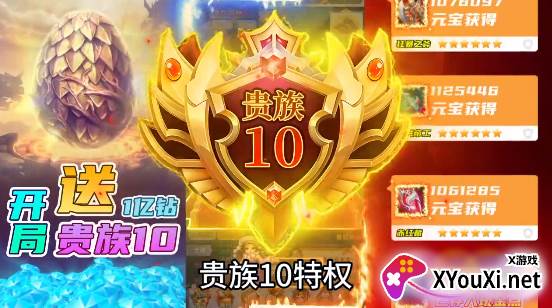 3.开局即享亿万钻石、十阶贵族、VIP10、28888钻石及38888绑定钻石,壕气冲天!