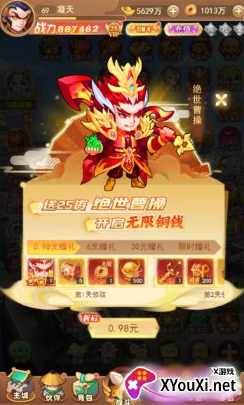 想要在主公的疆场上拔得头筹?主城内的“无限资源”页面是你的不二之选!开服首日进行充值,绝对是最划算的时机。不仅如此,充值后还能立刻解锁前三档的豪华礼包,内含顶级红将与海量培养装备,助你迅速组建一支能与赵云并肩作战的强大阵容,在游戏初期便奠定无敌之势。这绝对是前期不可错过的战略要地!