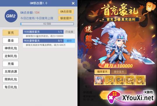 游戏初期,主线任务会引导你进行首充。但别担心,有了GM修改器,首充赵云尽在掌握,战力飙升不再是梦!当等级达到3级,别忘了领取那份仅需1元的超值礼包,内含100次抽卡机会,让你迅速集结心仪的武将,并获取大量培养资源,从而快速提升等级与战力。更重要的是,这些都能帮助你获得更多现金卡,进一步提升GM点的使用额度,让你在游戏世界中游刃有余。
