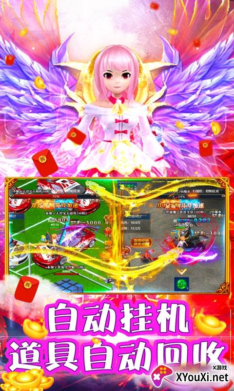 4. 首充即赠炫酷神装与永久称号,更有自动回收道具,让你边玩边赚钻石元宝!