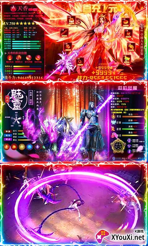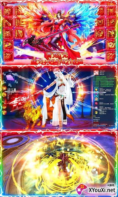 5. 首充豪礼:赠送红色称号、红色灵侍、红色装备、绝版时装及海量道具,更有五倍首充返利,五档选择,满足你!