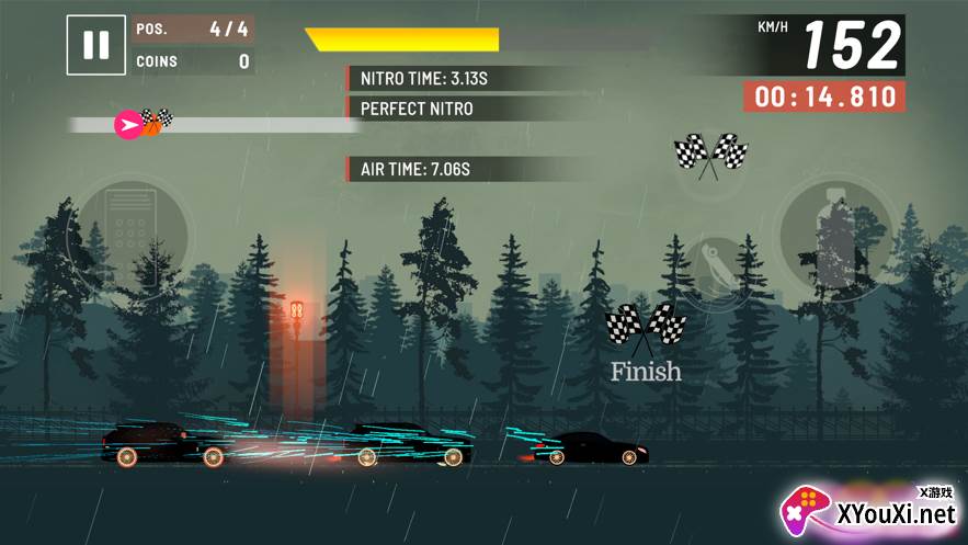 4、雨中森林:在雨滴的洗礼中,感受湿滑赛道的挑战。