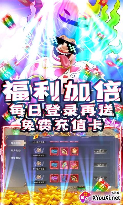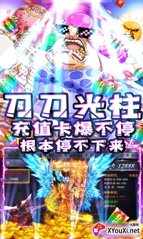 《武林争霸送暴力大妈版》是一款融合了RPG与仙侠元素的手机游戏,玩家一上线便能收获丰厚好礼,包括千元充值卡、尊贵VIP特权,以及免费满级时装,助您轻松体验游戏乐趣。每日登录更有充值卡相赠,刀刀光柱特效,充值卡掉落不断,战力轻松破千万,即使不氪金也能畅享酣畅淋漓的仙侠冒险。