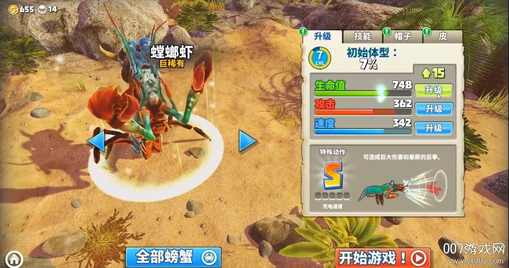 4. 海量实用升级选项,助你打造专属的螃蟹战队。