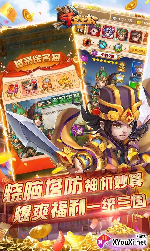 《守卫主公》手游,一款三国题材的策略杰作,以其丰厚的福利和深度的策略玩法吸引着众多主公。玩家初入游戏,即刻获赠价值18888元宝的豪礼,更有机会将五虎上将收入麾下。在征战沙场的过程中,每一次闯关都有可能触发充值卡掉落,豪华福利礼包更是层出不穷。在这里,智者运筹帷幄,决胜于千里之外;神机妙算,暴爽福利助你一统三国!