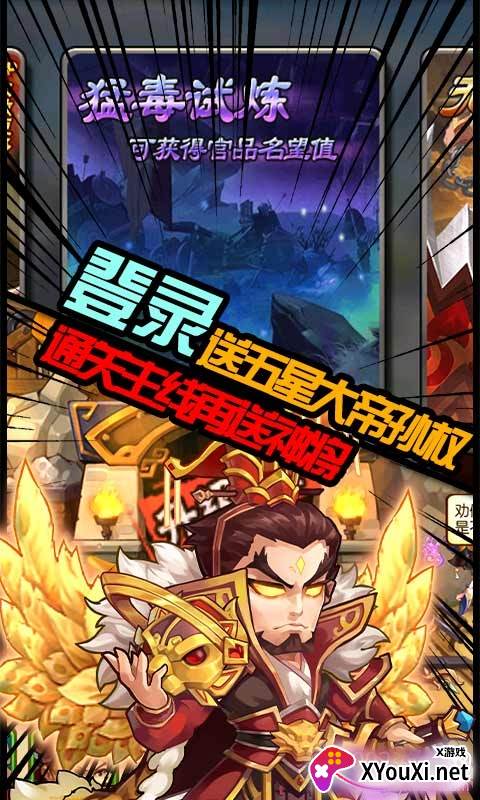 5. **神将相伴,七日有惊喜**:疯狂赠送神将!七日登录即可领取强大的五星大帝孙权,更有通关奖励丰厚的神将,让你阵容强大无忧。
