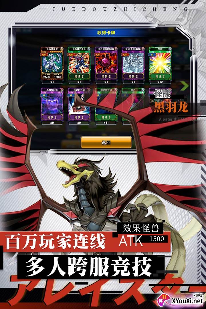 这款游戏是超人气动漫《游戏王》的官方复刻改编,完美还原了原作的规则、角色和经典玩法。青眼白龙、黑魔导、真红眼黑龙等上千种怪兽被全方位复刻,玩家可以自由打造龙族套牌、昆虫卡组、死灵套牌等多种卡组。来自各个次元的决斗者齐聚决斗之城,同台竞技,在线对决。召唤怪兽,精心布局,运用魔法与陷阱实现绝地逆袭,让融合怪兽给予对手致命一击。比拼卡组的深度,斗牌技的精妙,最终只有一位能够摘得胜利的桂冠!