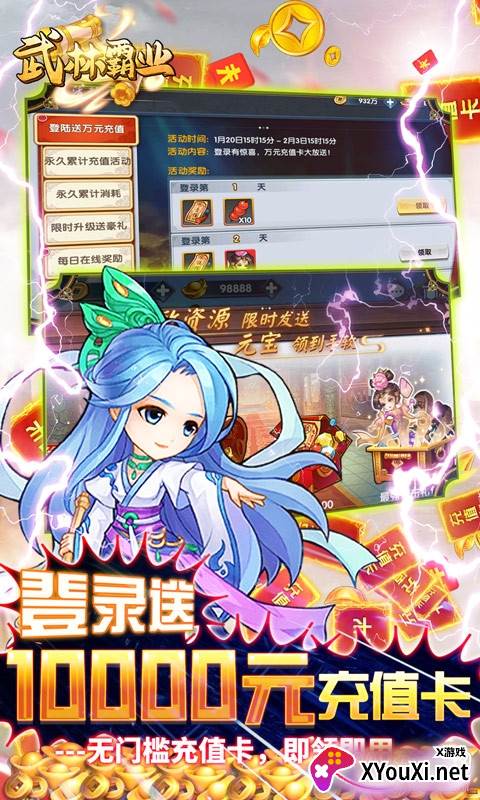 2. 每日登录赠送10000元充值卡,主线闯关亦有充值卡掉落,不花一分钱,也能玩得畅快淋漓!