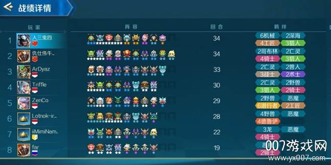 阵容构成:暗影猎手、野猪斥候、深渊骑士、暴食、暗影妖姬、火狐猎手、穿林之风、追猎者S90、北海巨妖、深海霸主。