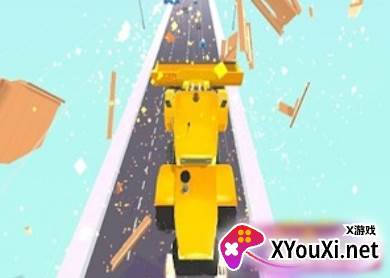 1.《暴力工程车》的核心玩法在于“跑酷”。你需要精准操控工程车,在主干道上疾驰,同时不忘收集沿途洒落的金币。