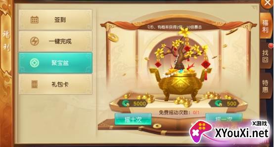 5. 背包内货币旁边的加号,将指引您前往聚宝盆界面。在此,您可用绑玉兑换贝币,更有机会触发2倍、10倍暴击,这是获取贝币的主要途径。