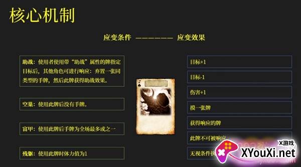 - 应变条件:游戏引入四种独特的应变触发条件——“富甲”(手牌数量全场最多)、“空巢”(无手牌)、“残躯”(体力值为1)、“助战”(其他角色弃置同类型牌)。