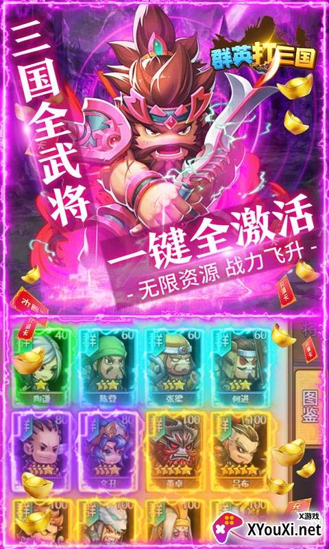 - 独享全图鉴武将大礼,一键激活所有武将,体验极致的畅爽与快感。