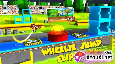 这不仅仅是一场赛车游戏,更是一场对勇气与技巧的极致考验。你将操控你的摩托,在充满致命陷阱的横版赛道上飞驰。穿越熊熊燃烧的火圈,躲避随时可能爆炸的炸弹,规避地面上狰狞的尖钉……每一次精准的腾空、每一次完美的落地,都将赢得观众的阵阵喝彩,成就一段不朽的特技传奇。