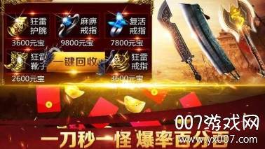 这传奇,怎能不爱?上线即送顶级神装,挑战小怪,1只=1888元宝,装备秒回收!10倍加速,800%爆率,刀刀光柱耀眼,3分钟轻松斩获20W元宝!