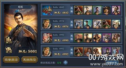 在武道会中,玩家可从出现的对手中任选其一进行挑战。攻守双方将派出五名武将,进行一场场1V1的轮番对决,率先取得三场胜利者即为比赛胜者。