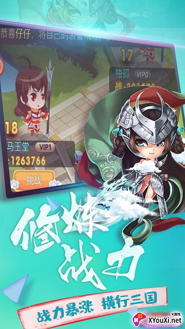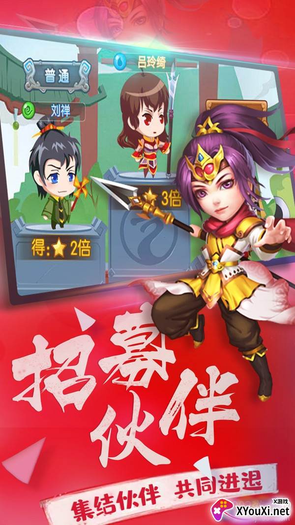 这款游戏以其独特的卡通动漫风格为主题,玩家将在其中招募众多骁勇善战的战士,与您一同踏上征途,攻占一座座精英城市,成为三国世界的统治者。