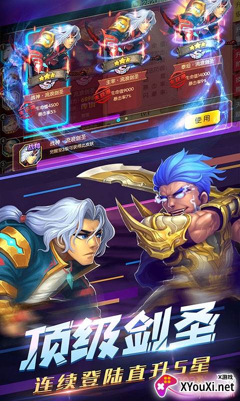 首日登录必送S级英雄“流浪剑圣”,连续登录即可将其升至五星!