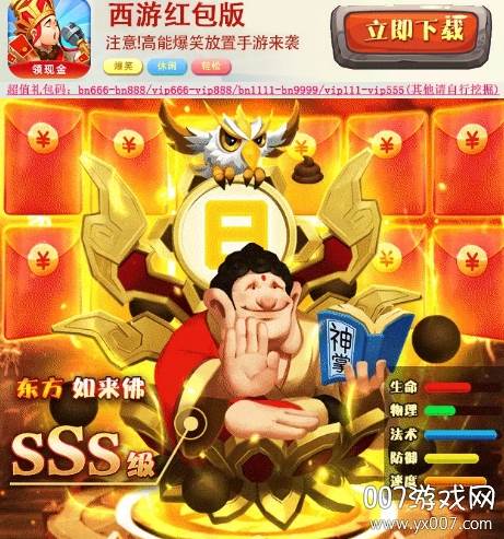 在《西游红包版》中,挂机升级也能乐享红包!当你的等级达到120级,即可领取666元红包;若能冲刺到150级,更有888元红包在等你!开局即送SSR级如来佛祖,他将伴你一路挑战,甚至可能“玩坏”服务器!