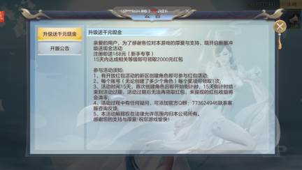亲爱的玩家,为感谢您对《剑来诛仙》的厚爱与支持,我们特别推出新服冲级送现金活动!注册即送168元新手礼包,更有机会在15天内达成指定等级,领取高达2000元的丰厚红包!