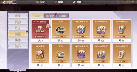 注:返利货币为御朱印