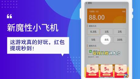 全新升级的“新魔性小飞机”已上线,这不仅仅是一款红包赚钱游戏,更是一次福利与玩法的全方位革新!在原有基础上,我们新增了更丰富的红包活动和多样化的游戏模式,诚意满满。初来乍到?别担心!只需轻松完成新手指导,即可立刻收获0.3元的见面礼!游戏支持微信一键登录,操作便捷。它难度适中,福利却源源不断。心动不如行动,快来007游戏网下载“新魔性小飞机”,开启你的赚钱之旅!
