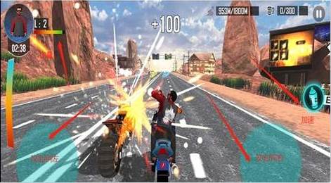3. 实力进阶:通过不断的磨练提升你的格斗与驾驶技能,更强力的摩托、更敏捷的身手,让你在躲避敌人攻击、保护爱车的同时,所向披靡。