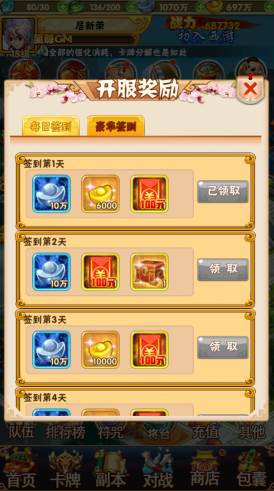★ 每日活跃度达标,必得百元充值卡;登录即送巨额充值卡,福利拿到手软!