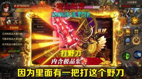 10倍加速引擎,200%狂暴爆率,刀刀烈火,招招光柱,3分钟挂机,20万元宝轻松入袋!